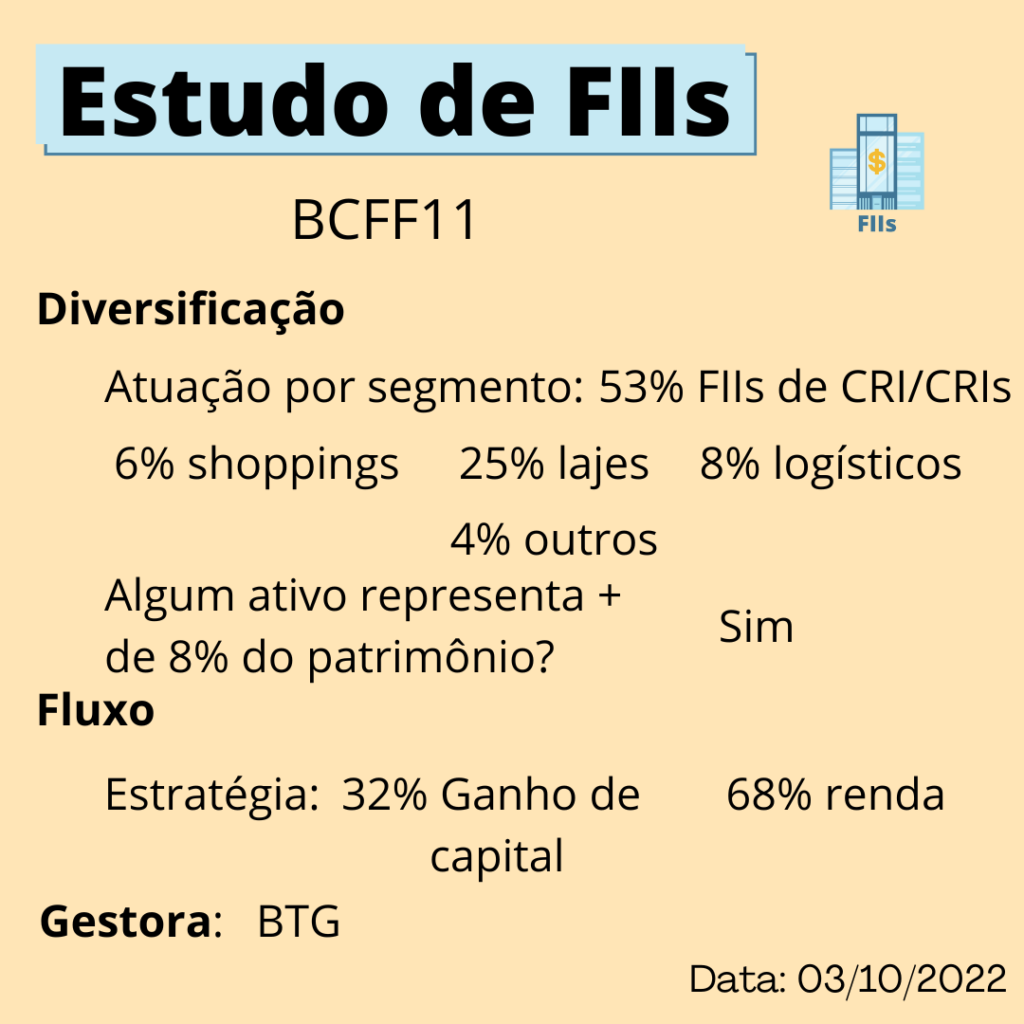 Por fim, vemos na imagem a estratégia de ganhos do BCFF11. Mas essa parte eu explico bem no vídeo abaixo: